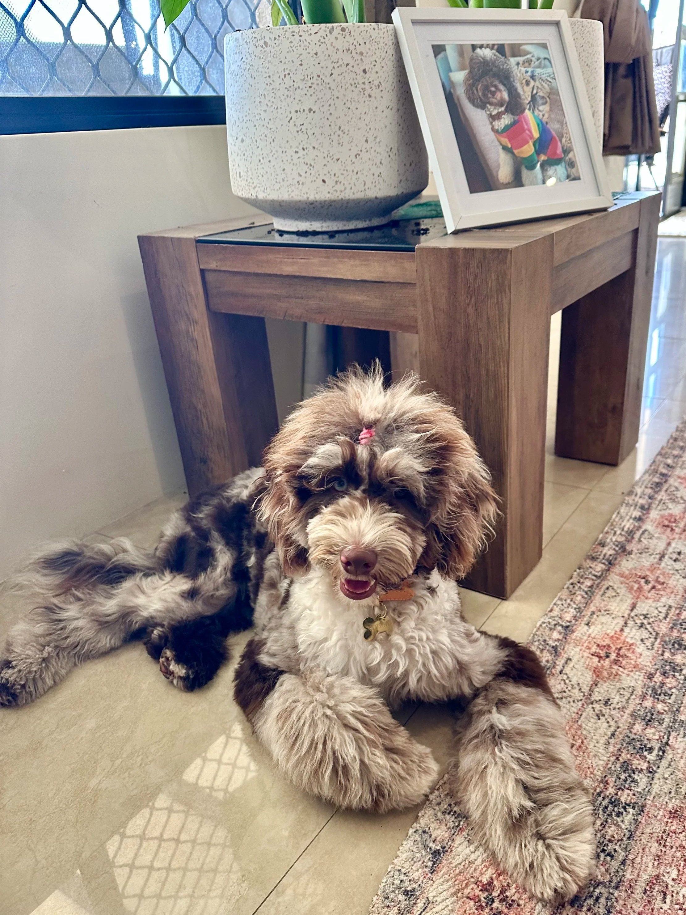 Bordoodles WA, F1b Chocolate Merle Puppy, 4 months old